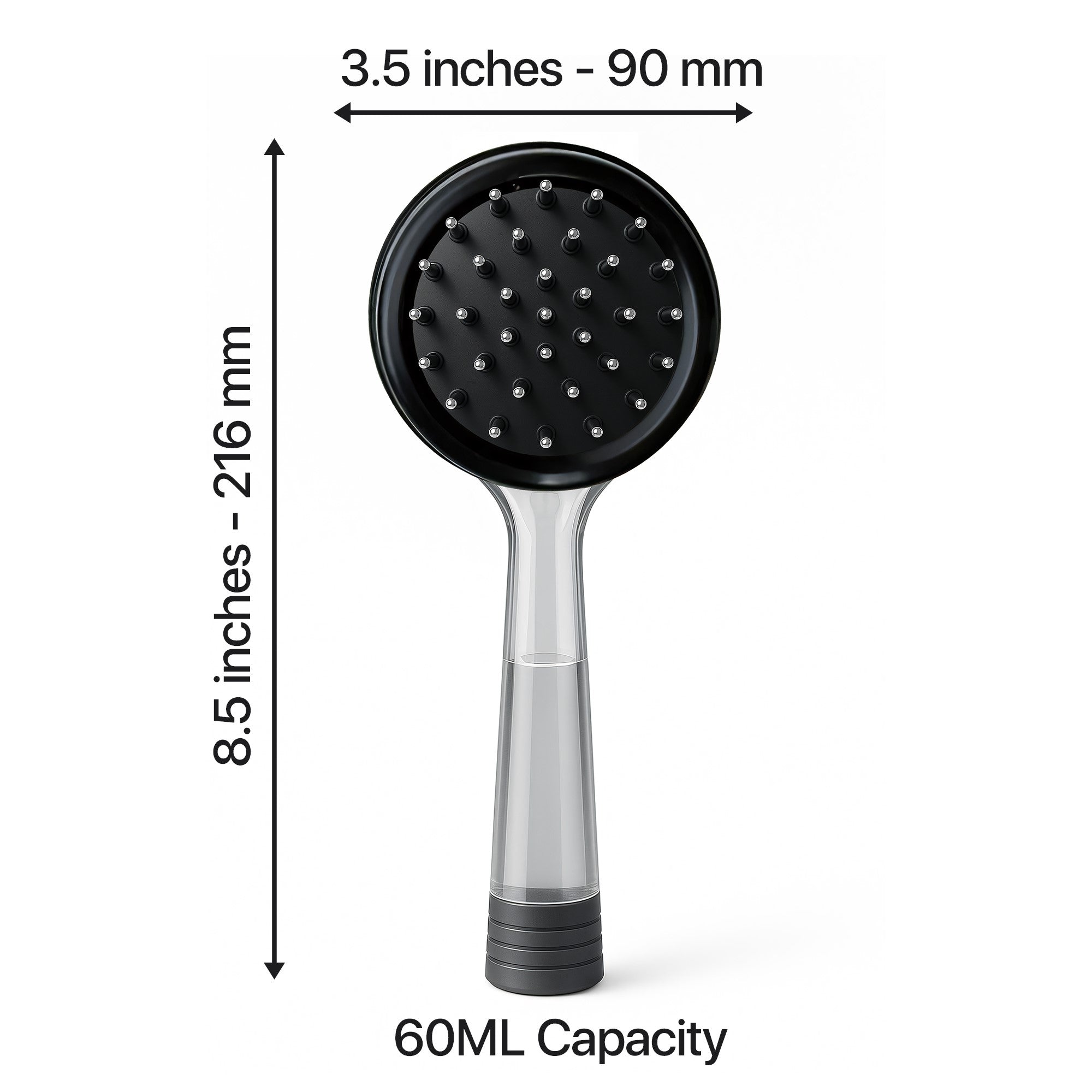 • LARGE CAPACITY...BUT NOT HIGH OUT FLOW: 60 ml capacity means fewer refills, but it stays in the brush for future uses. You don't need to fill the brush to capacity. You can have as little as 20 ml (less than 3/4 ounce). Each brush stroke distributes a finite amount through each membrane cushioned comfort bristle in a controlled manner